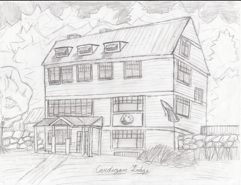 This is a sketch that I drew of Cardigan Lodge. Yes, those are supposed to be trees in the background.