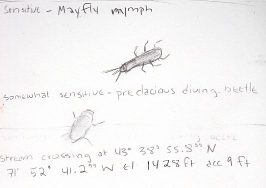 Image of sensitive and somewhat sensitive organisms found in the stream: