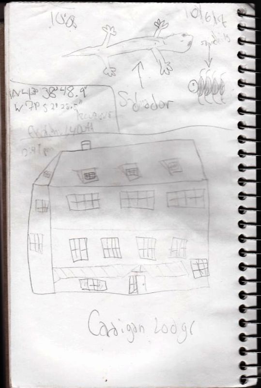 On day 3 of our Cardigan Trip my group set up for breakfast and had pancakes. Then, we packed our lunches and did a few games outside the drizzly rain. Human/ environment interaction is when people are doing something that is with the environment. So, hiking is human/ environment interaction. Also, my group went by the river to catch salamanders and other bugs. Then, we stopped for lunch and played a game of hide and seek. We went through marshlands which were really cool. When we got back we had to sketch Cardigan Lodge.