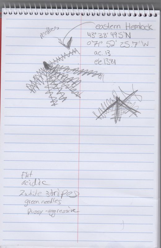 On day three is was a fairly short day we spent most of our time at welton falls although i spent more time in the river because i could not get a grip on the rocks. While we were in that specific area there were many easter hemlocks, that have invaded that part of Cardigan this may have happend if the wind were to blow and and seed would have landed and grown there or if someone purposely planted them there for that to intentionly happen. But as we continued to walk we passed a old cellur that was an old tree farm whom would sell the trees and then regrow them. So they intentionly planted that tree seed there.