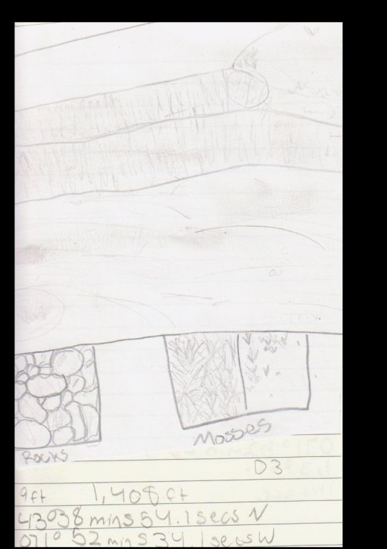 On our last morning at cardigan, we were woken up to Mrs. Roberts blaring music, trying to wake us up. When we finally got up, me and my bunkmates had to clean our room and pack up. It took a while, but after it looked just like when we got there! Then, I loaded up all of my luggage into the trailer and went to breakfast. We took so long cleaning our room, there was no hot chocolate left when we got there. For breakfast, we had french toast, fruit, hash browns, and juice. After, we went up to our rooms to prepare for a short day of hiking. My group literally went everywhere that day. Day 3 was my favorite because we saw a lot of cool stuff. Like an old cellar hole, really pretty streams and rocks, forts, and old ski tow, fields, and lots of other things. My favorite part was hiking up this grassy hill, where we ate our lunch at the top. We did lots of quality sketching that day. It was very fun!