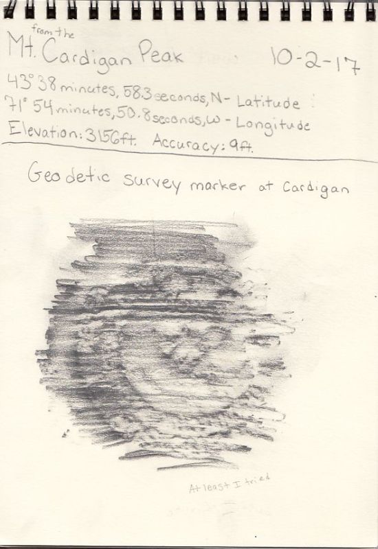 This shows the geodetic survey marker engraved into the rock at the summit of Cardigan Mountain.