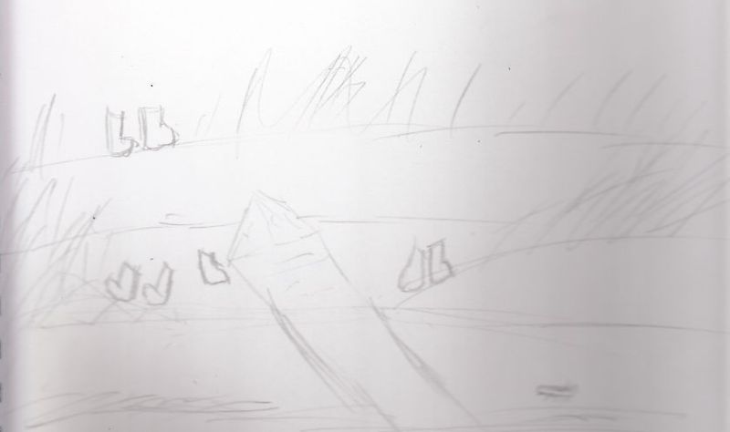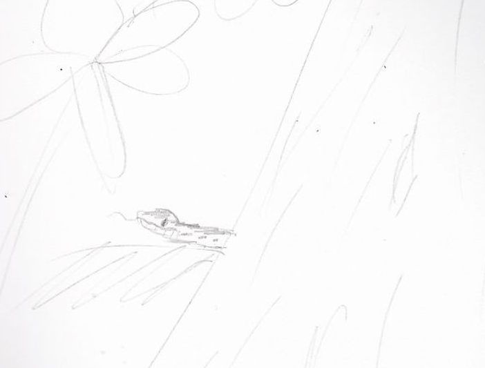 Then we hiked. We found some cool stuff like a cellar hole and a geocache. Then we found the beaver lodge. That was an interesting place. It was muddy and many trees were dead but there were other cool things. Such as two of my favorites Sketches were from there. We saw a weird bug and my favorite, the SNAKE. It was orange and everything. We had to leave because it was getting aggresive but that was still really cool. You can say all of that represented movement.