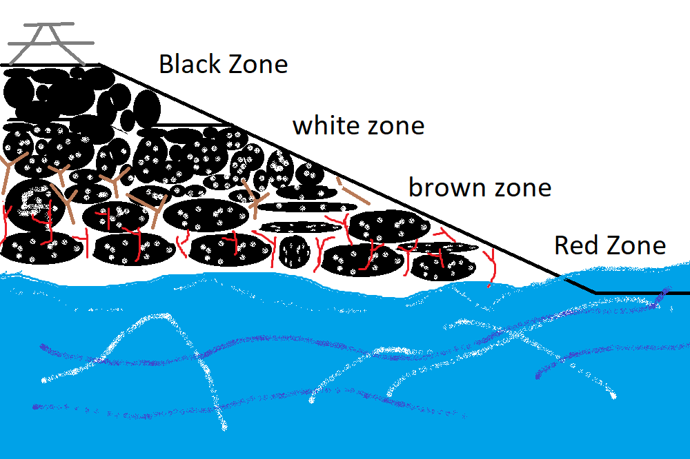 I think the Red zone has the most variety of all the zones. I beileve this because, it is almost always covered by the ocean during high or low tied which allows it to be a wonderful home for crabs, fish, sea urchins, and more. Another reason is when, it is low tide. There are usually a lot of tide pools that allows small fish, crabs, barnicles, and more to thrive. This is why i think that the red zone has the most variety of all the inter tidle zone. However, the brown zone also has a lot of life in it. This is because it is just above the red zone.