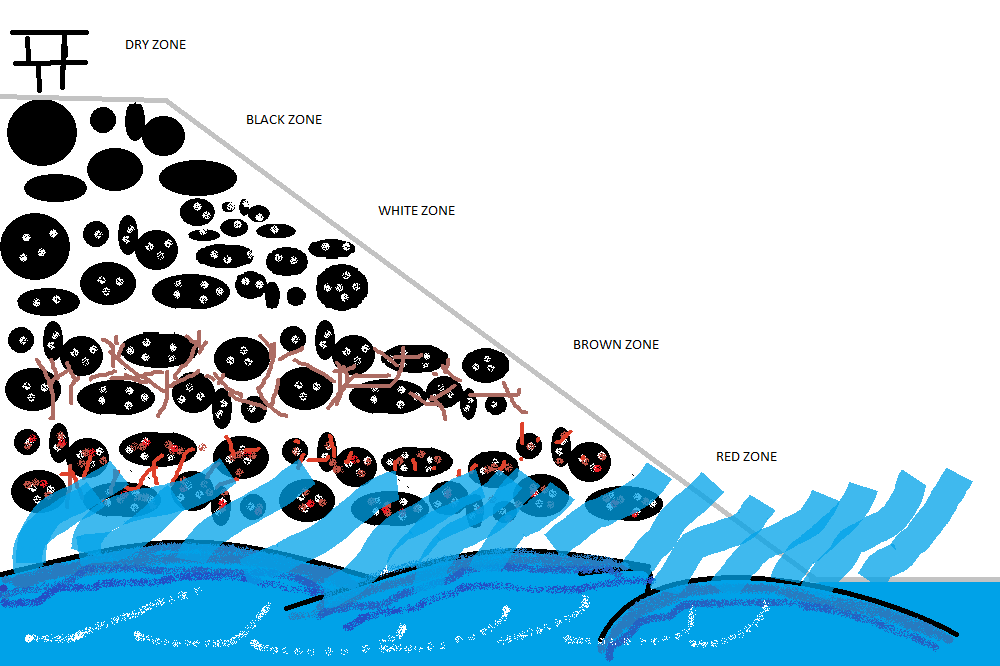 I think the most variety is in the White, and brown zone because it has all sortrs of animals like green crabs, side swimmrs, lobsters, limpet and many more!