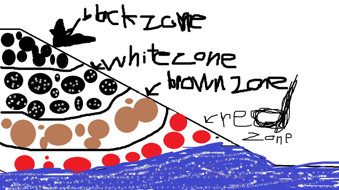 I think there is the most veriety in the brown zone because it has about half the time in the water and about half the rime out of the water, so there can be multiple different types of animals there. Like ones that like to live mainly out of the water and ones that like to live mainly in the water will live here. I also saw many interesting things there like seaweed and crabs.