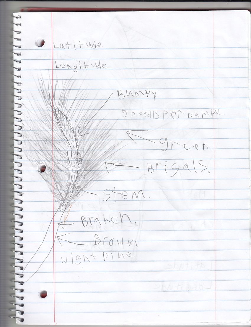 "Day 3 Friday location" On day three we got up, got breakfast and talked. Then we got our gear on and started hiking. we ched the gps and made a note in it and ceaped walking. We wrote more in our sketchbooks. We hiked another mountain. Then we saw the fire tower and how we used the mountain to see all of the forest. Hiked back and packed up and left Mount Cardigan.