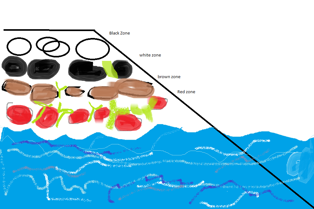 Black zone is called the black zone because all the rocks have this algy stuff on the rocks called syanobackteria.