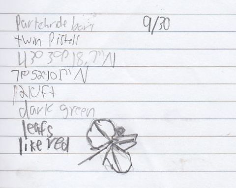 Sadly it was the last day at cardigan. We woke up, we ate a lot, then went up to our rooms, and packed them up, and then we got ready to hike. When we were ready we went down stairs with all of our gear and put it in Mr. Woolners trailer. Then we had a quick meeting with our hiking counselors. Then got of on the last hike of the trip. We did a lot of sketches. The whole hike we hiked along a river. We saw an undercut from an erosion where the bottom of the cliff falls out. Still on our way to the destination we crossed the river. When we got to the destination it was a waterfall! We ate lunch at the waterfall . We had a sandwich, a apple, and trail mix. On our way back we saw partridge barrys and Mr. Woolner said we could eat them but they are very gross. When we got back we hopped on the bus. Lastly when we got back and the boys soccer team had to get right back on a bus for a game.